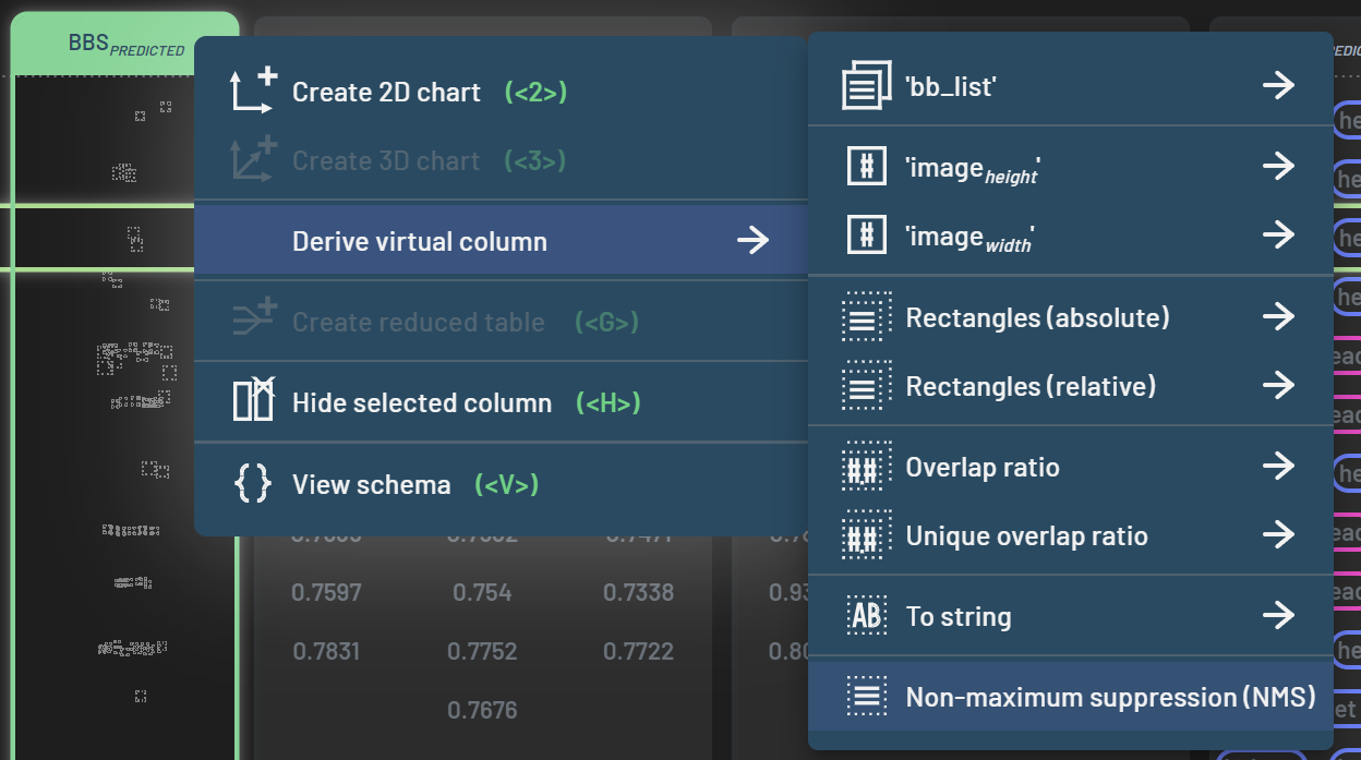 hover over Derive virtual column, and select Non-maximum suppression (NMS).
