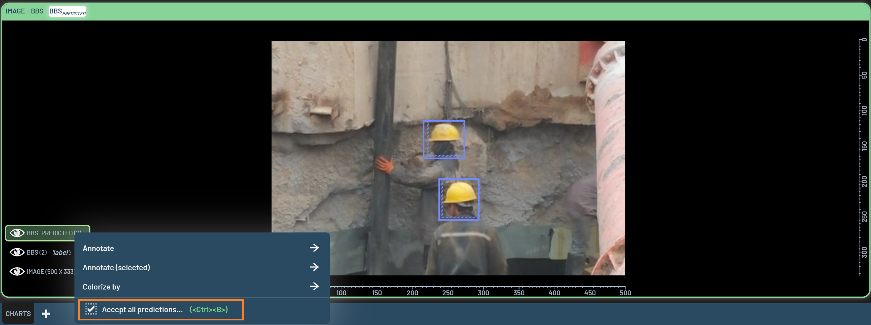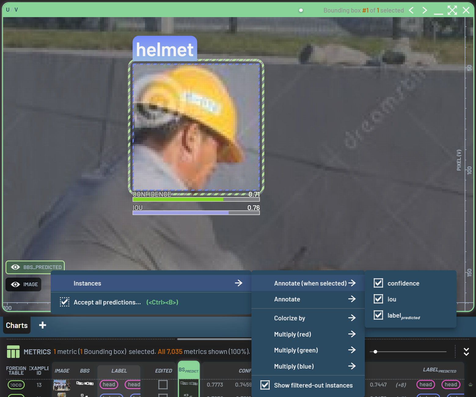 In the Dashboard, you are not only able to manually create and edit BBs, but also you can convert predicted BBs to ground truth. It can be done on individual BBs, on a sample, or on all samples.