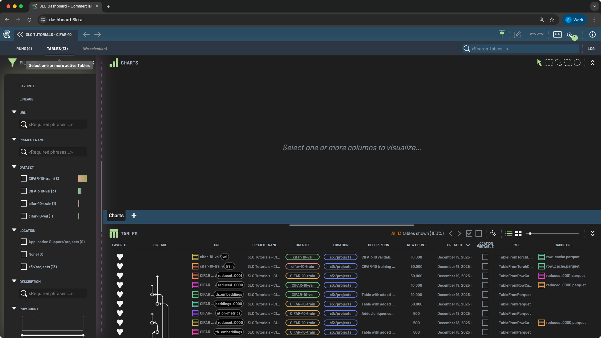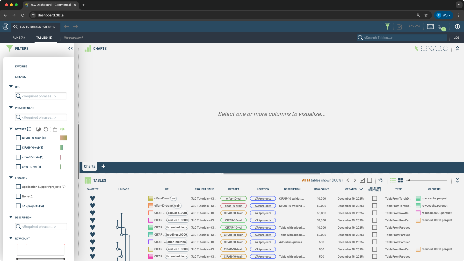 Datasets. The tlc Python package and Dashboard provide ways to create,